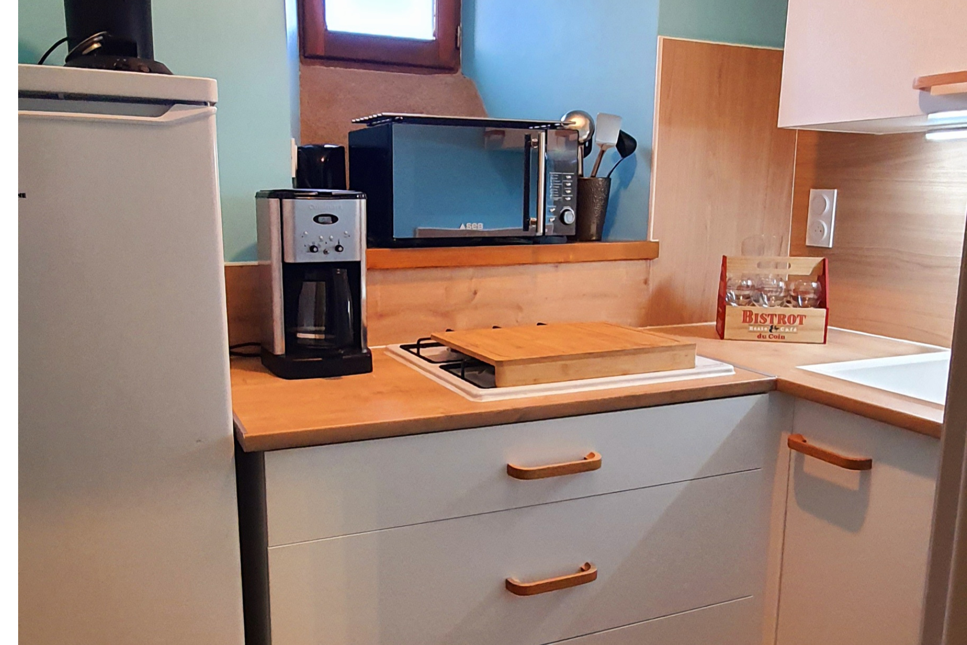 Équipement du gîte le Jonquille : 1 lit double en 140cm, 1 lit double en 160cm et 2 lit simples en 90 cm – Télévision dans le séjour – Cuisine : plaque de cuisson gaz et électrique, four électrique, micro-onde, cafetière Senséo et cafetière filtre, grille pain, bouilloire, frigo, lave-vaisselle et kit de nettoyage. (Photos non contractuelles, certains équipements ont été changé ou complété).